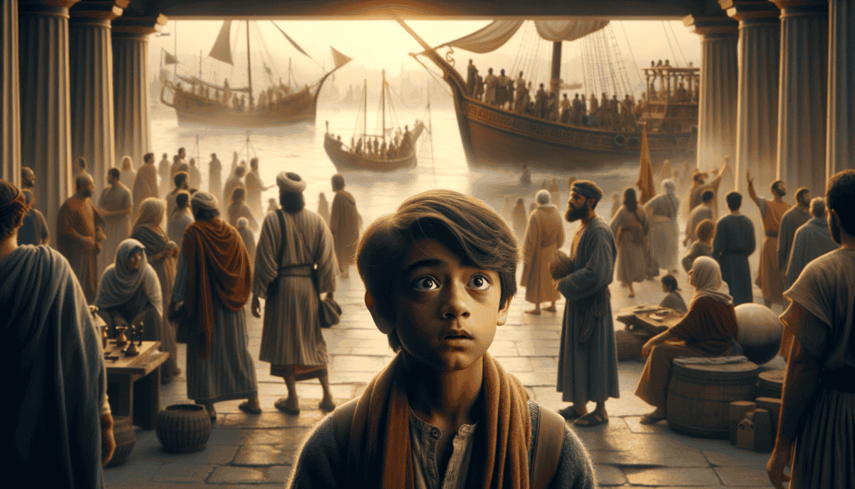 “Look there,” Nikolas pointed to the busy harbor. “See those ships from Egypt, Persia, and Rome? When I was your age, we rarely saw such visitors.”