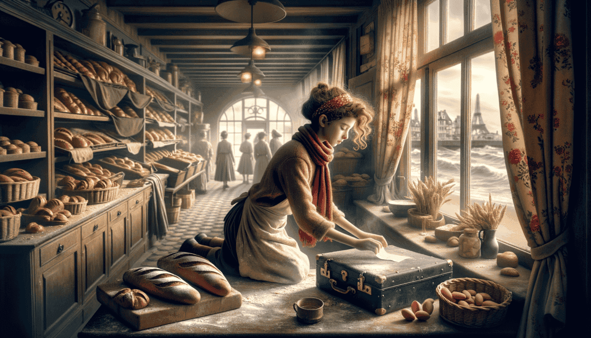"Mama, the bread is ready!" Marie called out, flour smudging her cheeks as she adjusted her favorite red scarf.