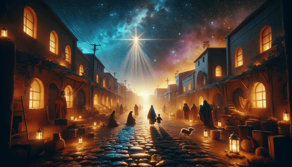 Far away, some very wise men saw a bright new star in the sky. They knew it meant something amazing had happened. They followed the star all the way to Bethlehem.