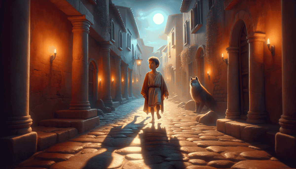 The moon hung like a silver coin over the sleepy Roman town of Lupinia. Marcus sat on the stone steps of his family's villa, his eyes wide as his grandfather's words painted pictures in the cool evening air.